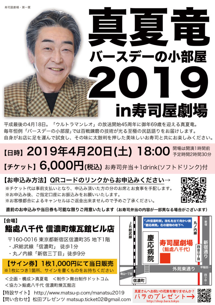 ウルトラマンレオで主演、おゝとりゲンを演じた真夏竜が、毎年恒例のバースデーライブ「バースデーの小部屋」を開催。